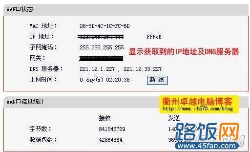 4、设置完成后,可以通过路由器“运行状态”查看当前网络详细信息,包括MAC地址、IP地址、子网掩码、网关及DNS服务器、WAN口流量等信息。