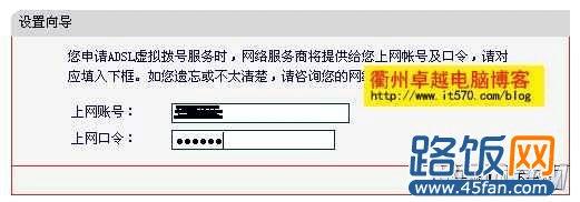 3、本文以采用ADSL虚拟拨号(PPPOE)为例,选择第一项后,点击下一步,输入运营商提供的帐号及密码后,点击下一步,完成即可。如下图所示: