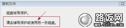 一般出现磁盘被写保护导致无法复制文件会弹出如下提示: