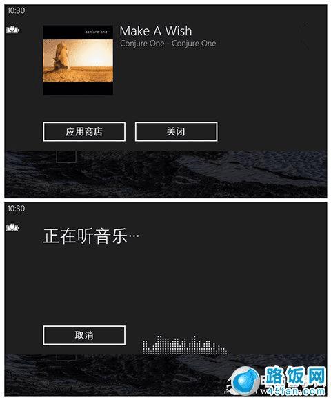 在公共场所或收听电台时,突然遇到自己喜欢的歌曲却不知道演唱者?快,点“搜索”,再点屏幕下方的音符图标,把Lumia靠近音源,一会儿屏幕上就能显示出艺术家、曲目和Windows Phone网上商城的购买链接。