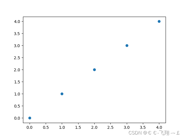 plt.scatter(np.arange(5), np.arange(5)) # 安排两个0到4的数组绘制