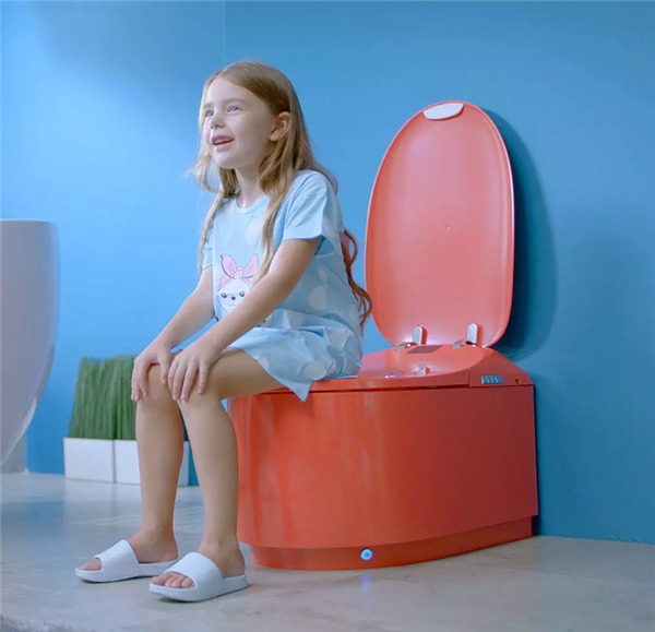 如此一来,即便是身高在90cm左右的儿童在没有额外垫小板凳的情况下也能自行如厕,解决家庭成员不同身高、不同年龄段的人群如厕姿势问题,并且成人可轻松实现35°蹲姿如厕。