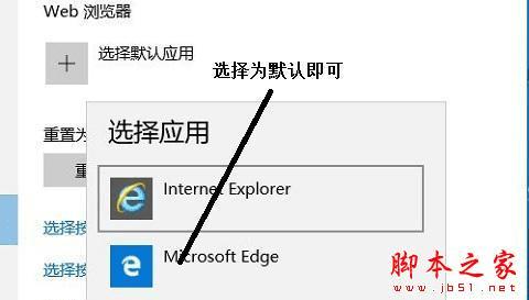 点击选择默认应用,弹出浏览器选择菜单,选择Microsoft Edge,
