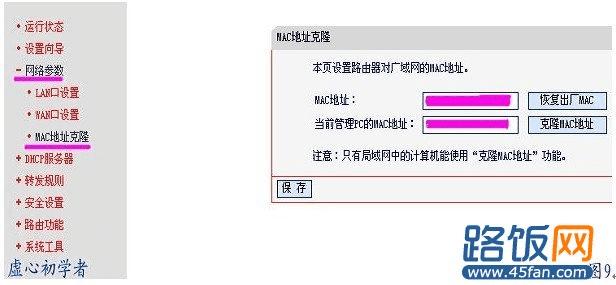 第九步:此路由器还有MAC地址克隆的功能,MAC地址一般不用更改。但某些ISP可能会要求对MAC地址进行绑定,此时ISP会提供一个有效的MAC地址给用户,您只要根据它所提供的值进行绑定,不过大部分的ADSL都不用此功能。(这个功能没有特殊要求不需要启用)