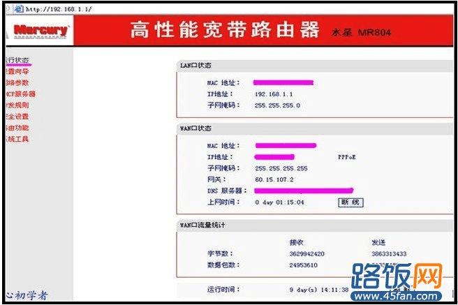 第三步:运行状态,显示我们路由器当前内、外网的信息。