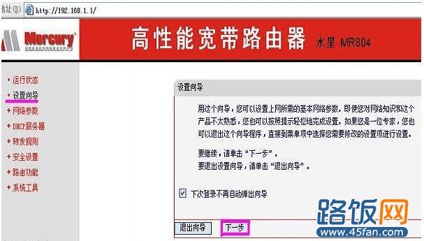 第四步:设置向导设置路由的基本参数。