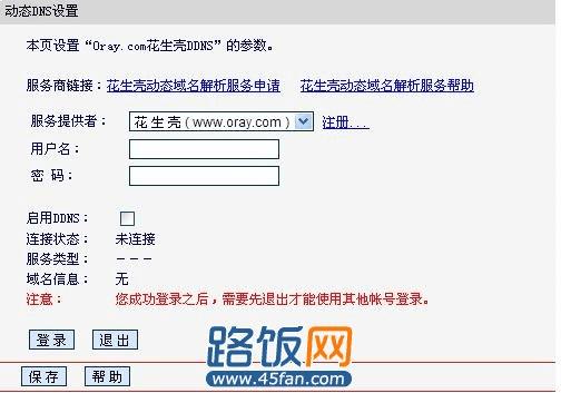 3、在动态DNS设置界面中,可以设置服务提供商,默认提供商是花生壳,具体怎么注册花生壳,可以参关相关教程。填入花生壳用户名和密码。