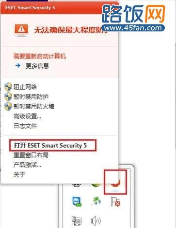 2、看到ESET设置项后,右击ESET杀毒软件图标,选择“打开ESET Smart Security”命令,如下图所示: