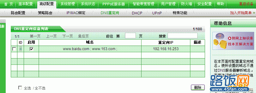 例如,局域网中,有一个DNS服务器(IP为192.168.16.253),可以解析www.45fan.com、www.163.com等等。那么我们就可以有如下配置可以实现:
