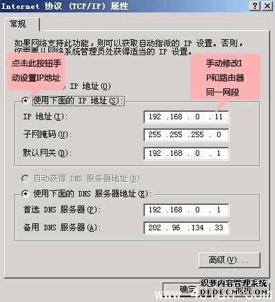 3 查看本机是否与路由器牌同一个网段,比如192.168.0.11和192.168.0.111是在同一个网段的。或者就把电脑的IP设置 成自动获取。