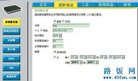 注意:虚拟服务器功能默认的设置是关闭的,需要激活此功能。