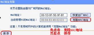 l 部分服务商可能绑定了MAC地址,请使用之前单机可以上网的电脑,有线登录到路由器的管理界面,选择“网络参数—MAC地址克隆”,点击“克隆MAC地址”,然后保存,并根据提示重启路由器,观察路由器是否可以获取到IP地址;