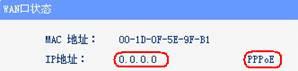 l 检查“管理界面—运行状态—WAN口状态”显示的上网方式是否正确,若不正确请重新设置WAN口连接方式,如下图为“PPPoE”上网方式;