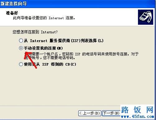 3、在连接向导里选择第二项“手动设置我的连接(M),如图所示: