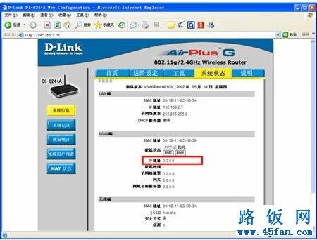 点击上方系统状态按钮,查看一下WAN端IP地址是否有数值,如果有数值说明已和外网连接。