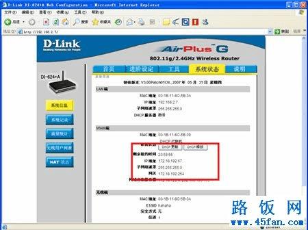 对于选择动态IP地址的用户来说,如果没有其他功能的要求直接点击执行就可以了,路由器会显示重新激活,点击继续即可。这时您可以在系统状态中看到如下的界面即说明网络已连接。