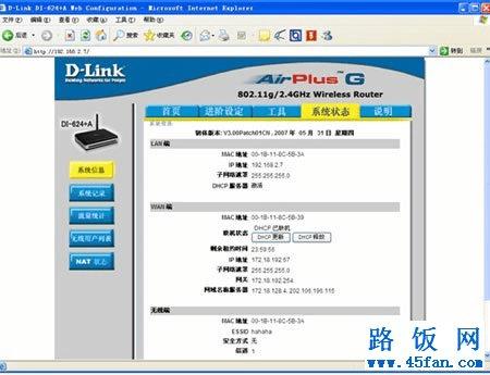 一般经过这样的设置之后,在系统状态中就可以看到“WAN端”中的IP地址,子网掩码,网关等信息都不再是0.0.0.0,而是具体的数值,便可以上网了。