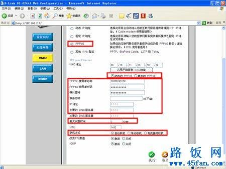另外如果您是包月的用户建议您将下面的联机方式选择为自动联机,最大闲置时间为0分钟;如果您是每月限时使用者,也可以选择这种方式,不过在您不上网的时候就要将路由器断电,这样才不会再计费,以免对您的经济造成不必要的损失。