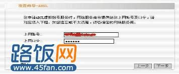 2、接着点击快速设置选择ADSL虚拟拨号,点击下一步然后输入上网帐号和上网口令。