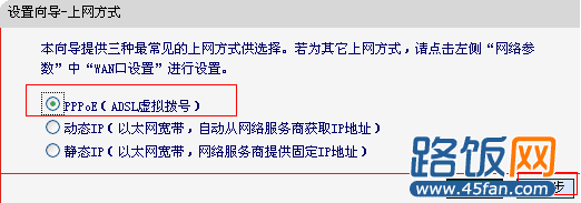 3.然后会进入以太网接入方式界面,选择PPPoE(DSL虚拟拨号)方式,点击下一步。