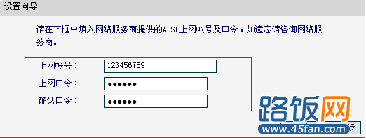 4.会进入ADSL上网账号和口令界面,此时主要按要求输入你的账号和密码就ok了。