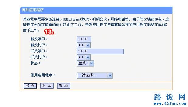 13.触发端口、开放端口LOCKON为10308,如果有其他下载或者游戏需要开启端口,则填入相应端口。