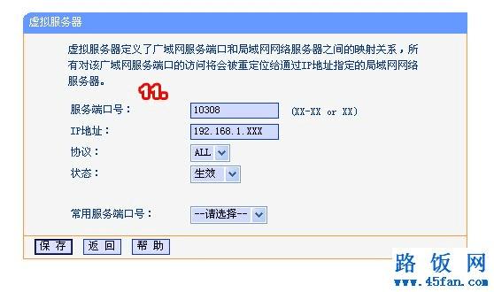 11.服务器端口号,LOCKON是10308,如果你有其他应用程序要建主,就填相应的端口号。IP地址就是你刚刚绑定的内部IP地址。其他如图设置。