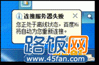 1、登录软件版百度Hi测试会显示连接服务器失败,稍后重连在软件登录状态栏里一直处于离线状态和正在连接状态。