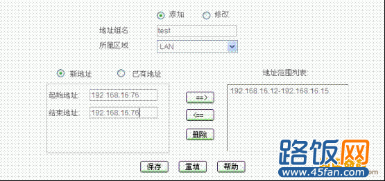 1、在“防火墙”—“地址组”里面,添加一个IP地址组,将不允许上网主机的IP地址全部添加进去: