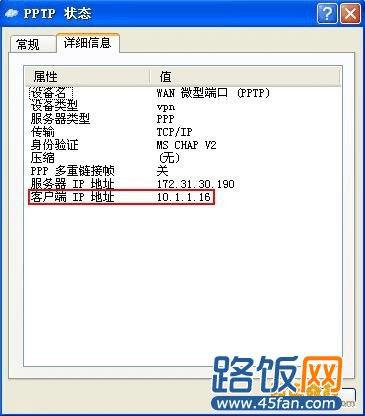 3.拨号成功后,查看PPTP、L2TP拨号获取到的隧道地址,如下图所示,点击“详细信息”,“客户端IP地址”即为VPN拨号获取到的IP。