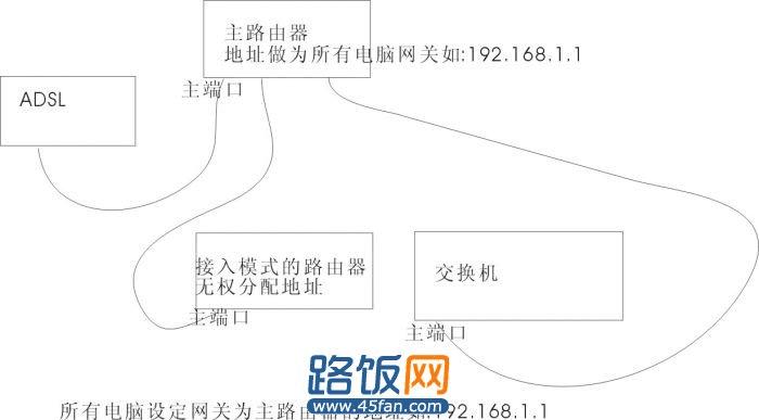 很多家庭网络有多台电脑共享上网的情况,如李三家,ADSL一台、路由器2台、交换机1台,请问该如何连接及设置呢?