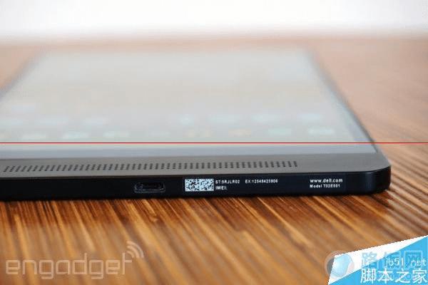 背面的经过阳极氧化处理的铝合金面板提供了相当出色的手感,戴尔宣称Venue 8是市面上最薄的平板电脑,机身并不如想象之中那么重(305克,比iPad Mini轻了七分之一),并且握持在手中的时候,能够感受到那种高档的精细做工,对得起它3299人民币的价格,但可惜设计师在设计背面摄像头位置的时候并没有特别用心,摄像头被放在了机身最下方,铝合金部分那个细细的黑条的左右两端隐藏着两颗720p的3D感应摄像头,这个在实际使用摄像头的时候必须将平板电脑上下颠倒握持,不然手指头会挡着。