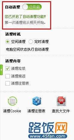 建议开启360卫士自动清理系统垃圾功能,在电脑清理界面右边,可以看到【自动清理】的开关,点击开启即可,如下图所示: