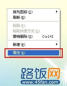 第一步:右击【桌面】空白外,选择【属性】选项。