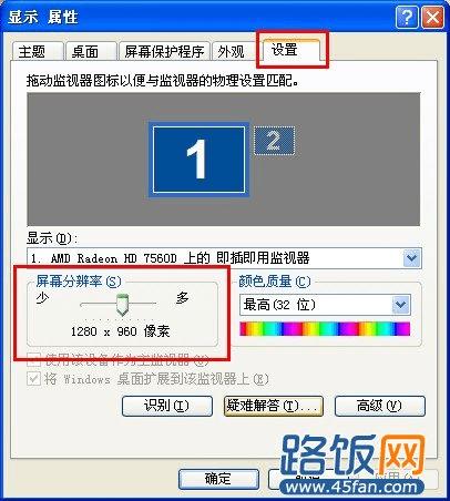 第二步:选择【设置】选项卡,里面有一个分辨率调整的选项,根据自己显示器的大小进行合理的调整,调到自己看起来舒服为止。