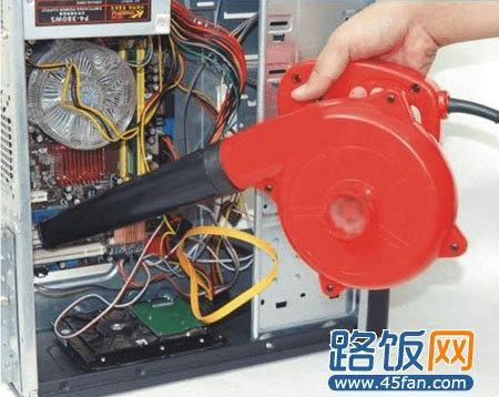 小编推荐先对主板做清灰操作,然后再给CPU和散热片之间加一些硅胶,一般清完灰之后CPU的风扇也会恢复。清灰主要用到的工具是:大功率的吹风机,也可以气磅(小编最喜欢用气磅,效果非常好,不过一般只有木匠家才会有)。硅胶一般在五金店里可以买得到。清灰时,最好买把刷油漆的刷子一边刷,一边吹。当然,如果你觉得自己清灰太麻烦了,或者自己不懂电脑,没有拆过机,最好还是拿到店里去清灰,一般30块钱左右清一次。