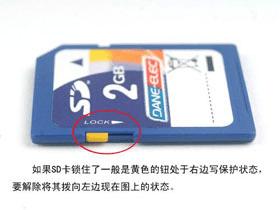 SD卡被锁了,SD卡上面会有一个锁的开关,移到LOCK端就会把SD卡锁死,不允许修改SD卡的文件,更别说格式化了。
