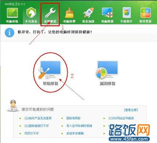 360安全卫士常规修复系统