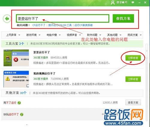 第二步:在搜索框里面搜索你碰到的问题,搜到了你电脑的问题之后,点击【立即修复】即可。