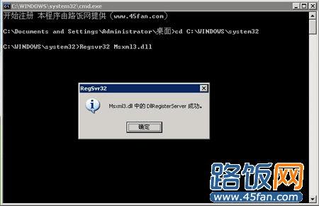 第三步:输入 Regsvr32 Msxml3.dll 命令,并回车。
