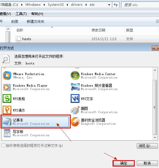 第二步:双击hosts文件,然后选择用记事本程序打开它,之后就可以编辑它,编辑完之后保存即可。