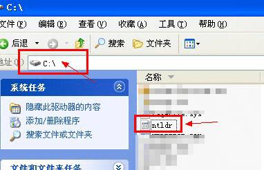 第二步:找一张操作系统光盘,放入光驱,进入PE系统(用U盘PE系统也行),把NTLDR文件拷贝到c盘的根目录下面。重启电脑即可。
