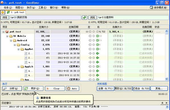 3,goodsync有时会重复同步工作,明明这个文件已经同步过去了,很有可能下次检测的时候它又同步一次,如果文件很多很大的话这个重复同步会浪费你很多时间