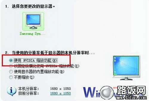 对于上网本来说,如果采用GMA950显卡,只需进入显卡驱动的“显示设置”窗口,然后将“纵横比选项”设置为“全屏(无边框)”就可以。对于采用GMA X4500显卡的笔记本,进入“图形属性”界面后,点击“显示器”图标,然后在“缩放”下选择“缩放全屏”即可。