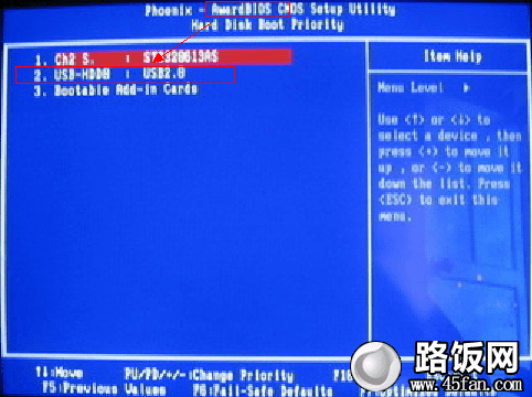 Hard Disk Boot Priority(硬盘引导顺序):这个是最关键的了,一般你之前插入了USB设备后,