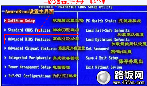 1、常见AWARD BIOS进入设置USB启动的方式,下图为进入BIOS后的界面