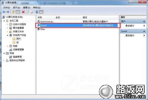 在弹出的【计算机管理】窗口中找到【Guest】用户
