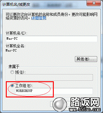 如果处于不同的工作组,可以在此窗口中进行设置: