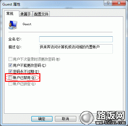 取消禁用Guest用户,因为别人要访问安装打印机的按个电脑就是以guest账户访问的。