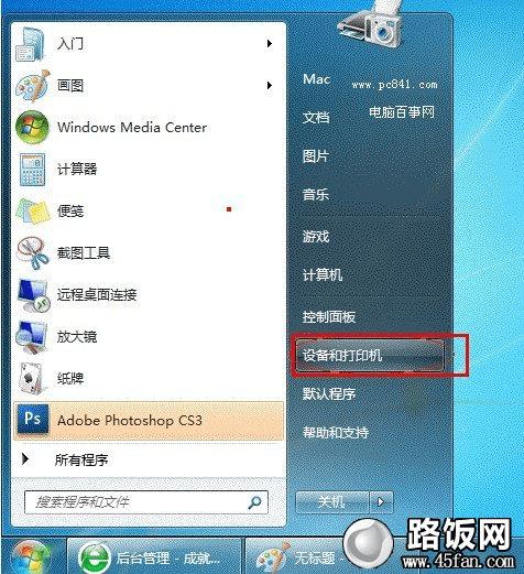 设置共享目标打印机:点击【开始】按钮,选择【设备和打印机】,如下图: